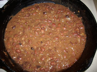 Cut your Bacon up into 1/4-1/2 inch slices. Fry until crispy. Remove Bacon and dry on a paper towel while leaving the bacon drippings in the pan. To the drippings add Onion, and Garlic. Cook until tender and translucent. Remove 1 cup of beans and leave them in reserve. Take remaining beans and mash them in the pan of onion and garlic. Mix it all together, and Add Chicken Broth. Add remaining beans and mix all together. Once mixed add cooked bacon back to the pot. Cook until bacon is no longer crisp. If needed add additional Chicken Broth to the beans.
