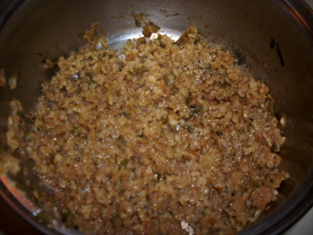 - Sauté in butter the garlic, onion and jalapenos until soft.