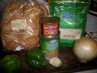 In a large skillet add garlic, onion and bell pepper and saute for 5 minutes or until tender. Add mushrooms, and black olives, saute for additional 2 minutes or until they are heated through. Add mixture evenly on buns and then top with cheese. Enjoy!