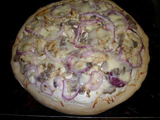 - Top with the chicken, onion, mushrooms and cheese, or your desired toppings.