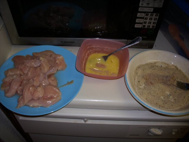 in the bread crumbs until they are also completly covered, then set aside