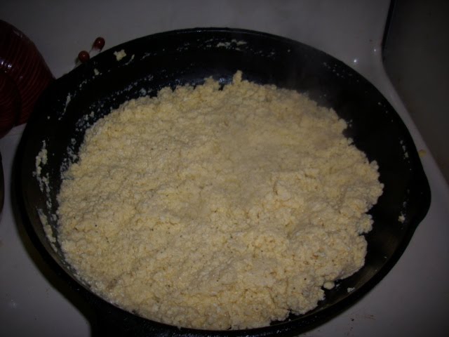 - In a medium size bowl, beat eggs, sour cream, water, and salt and pepper until fluffy.