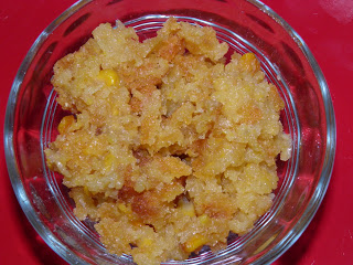 4.     Add defrosted corn into blender or food processor and with short pulses, coarsley chop the corn on low speed. It is important to leave several whole pieces of corn.