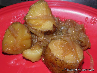 - Heat pan and add olive oil. Add potatoes and garlic and cook until the potatoes look a little translucent, and then add the onion. Keep stirring.