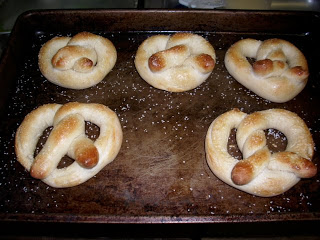 - To prepare pretzels: Place water in bread machine pan. Add mix. Top with butter and yeast. Select dough setting (checks dough after 5 minutes of mixing; add 1 to 2 tablespoons of water or flour if needed). When cycle is completed, turn dough onto a lightly floured surface. Punch down; cover and let stand for 10 minutes. Divide into 12 portions; shape each into a ball. Place on lightly greased baking sheets. Cover and let rise in a warm place for 1 hour. Roll and twist into pretzel shapes if desired, brush tops with egg white and sprinkle with Kosher Salt. Bake at 350° for 8 minutes or until lightly browned. Brush with melted margarine. Serve warm, and Enjoy!