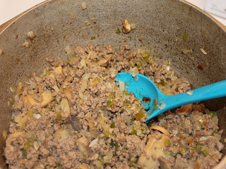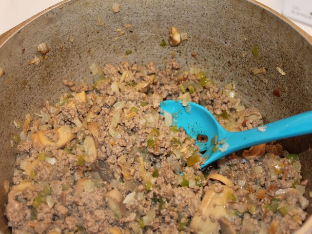 - Add dry soup, and mushroom and water , then cook another 10-15 minutes on medium giving the soup time to season the meat well and cook until the excess liquid cooks down.