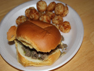 So anyway how do you come up with a Philly Joe? Well, a Philly Joe is the combination of a Philly cheese steak sandwich and a sloppy Joe = Philly Joe! They are excellent and make a great week night meal. You can even make the meat ahead of time and freeze it!