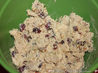 I found this recipe interesting because it’s a little different than your typical chicken salad. I loved the surprising sweetness with the dried cherries and I loved the occasional crunch from the almonds. This recipe takes an old boring recipe and gives it a nice make over.