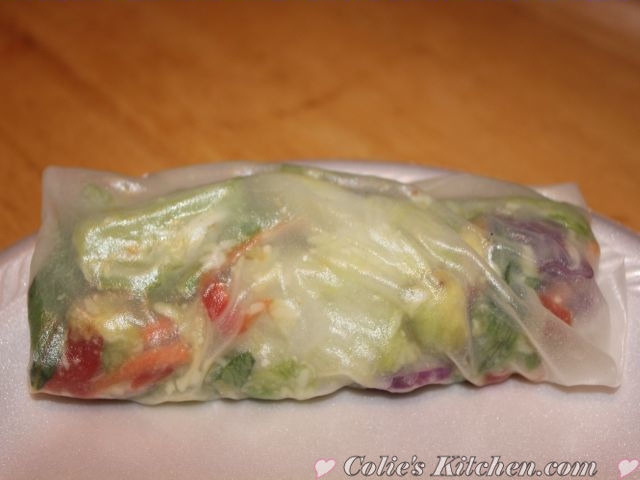 The rice paper will stick together sealing the edges. This makes a very fun salad side dish that is also an easy finger food. If you want to leave the dressing off of the salad you can serve it on the side as a dipping sauce. People love to dip! 😉