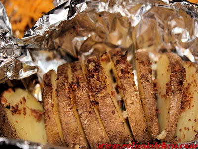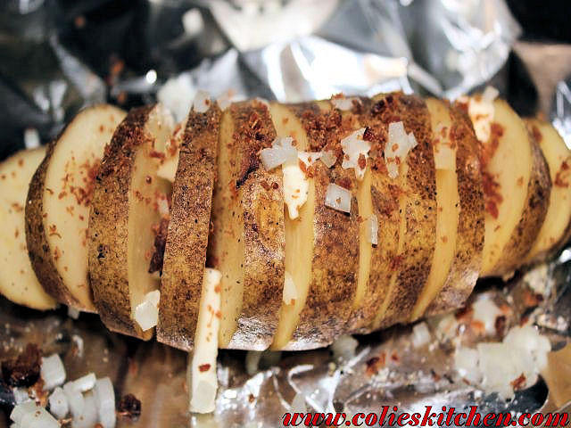 This recipe is fantastic! I made it with the grilling directions except I put them in the oven. I also added precooked bacon bits to each potato. In order to make sure I got the onions and bacon bits between each piece of potato slice I propped each one open with a small sliver of butter. Oh my goodness they were so good. Everyone said they would have rather eaten the grilled potatoes than the main dish. I thought that was funny! The potatoes come out nice and crispy and the onions taste grilled. I think next time I make these I am going to add even more onions to each potato. They are delicious!