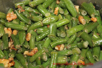 - Bring 2 quarts salted water to boil in a 3-quart pot. Add green beans and cook 3 to 5 minutes or until crisp-tender. Pour into a colander to drain.