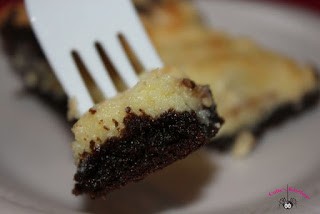 - Beat the frosting ingredients well and pour onto cake mixture.