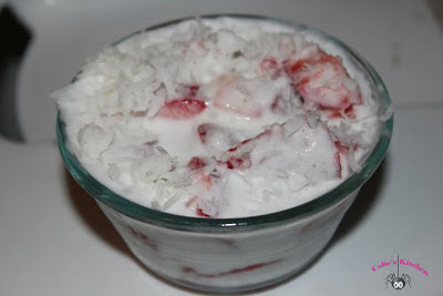 - Once it thickens fold in stevia (assuming your strawberries are not sweet) and strawberries and coconut.