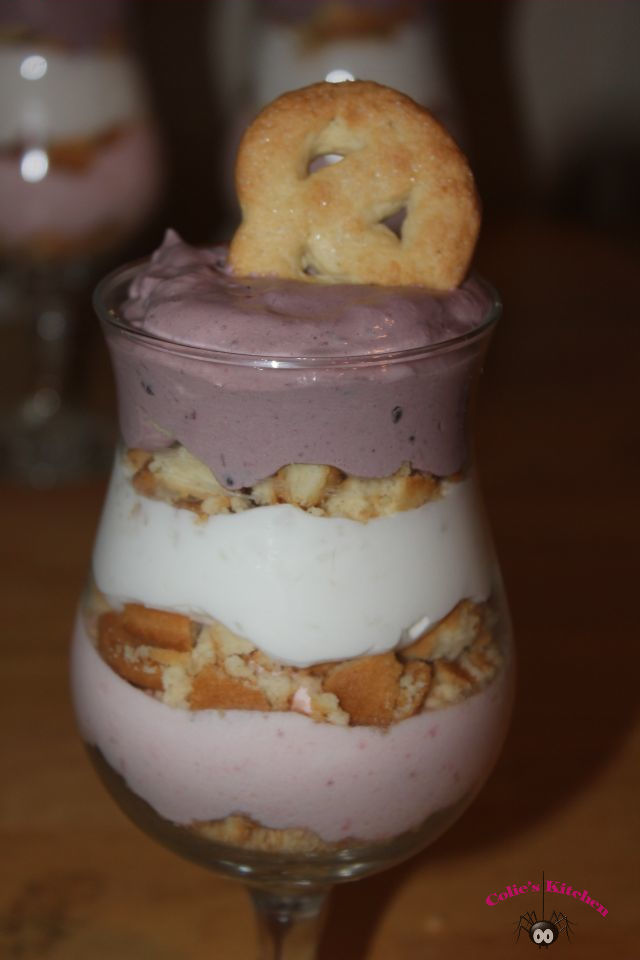- Start off by layering from the bottom blackberry, cookies, coconut, cookies, strawberry, cookies, or the other way around. It doesn’t matter what you do to it… its delicious!