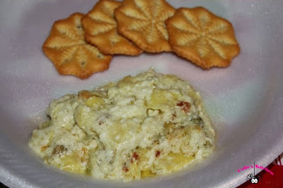 *Please note that the dip will seem oily because of the oil the artichokes were soaking in.*