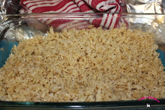 - Immediately stir in salt and pour water over rice in baking dish. Cover baking dish tightly with 2 layers of foil, or heavy-duty foil.