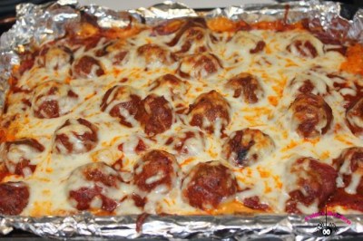 *My only complaint is that the bread on the bottom turned to rubber bread. Next time I am planning on taking the bread and spreading some garlic butter on it them toasting it. Then cutting it into bite size pieces. Another idea would be to take pizza dough, roll it into small 1 inch balls, place it in the bottom of the pan and bake it until the dough is cooked through, then proceed with the recipe.*