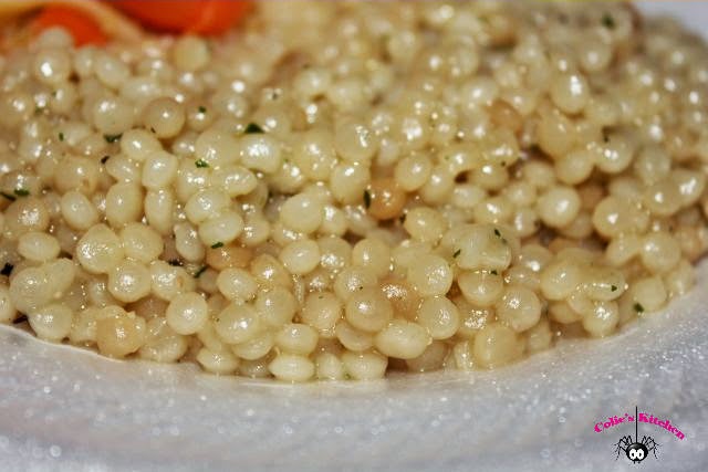 - Let couscous stand, covered, 5 minutes, then fluff with a fork and