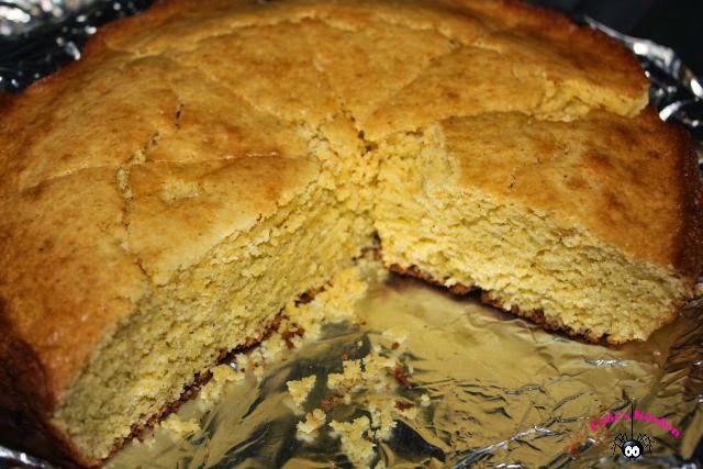 - Preheat oven to 400 degrees. Spray a 10 x 10 x 2 inches pan or similar. The original recipe calls for a 9 inch round pan but I found that to be way too small. The cornbread was more like cake than cornbread. I didn’t like that at all it was just too thick and took forever to cook.