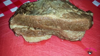 - Unwrap the brisket, cut away any visible fat, and slice thinly across the grain of the meat. Place brisket slices into the pan juices.