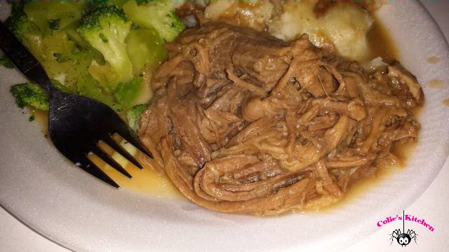 - Return to oven and bake until pan juices are thickened and meat is hot, about 45 more minutes.