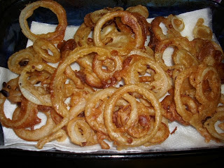 6. Once your onion rings are cooked place them on a paper towel to drain. Add salt and pepper if desired.