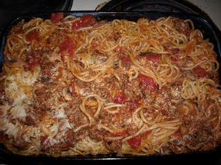 - Combine browned ground beef, spaghetti sauce, and oregano.