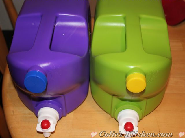 - Divide the detergent between three 1 gallon jugs