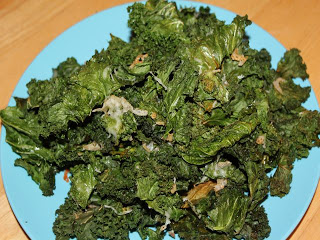 I have heard so many people say how great Kale Chips are that I have been dying to try them myself. Last week I was at the farmers market and they had Kale for .75 cents a bunch. I figured I had nothing to lose except .75 cents so why not grab a bunch.